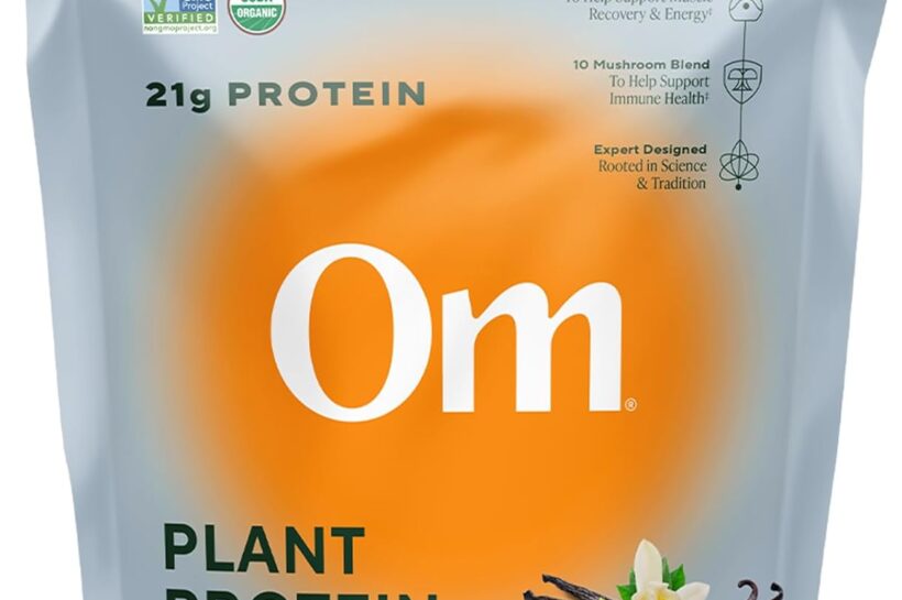 OM MUSHROOM SUPERFOOD Master Blend Vegan Protein – Creamy Vanilla Plant Protein with 10 Mushrooms, Ashwagandha, BCAAs & B12 – Energy, Recovery & Immune Support – 1.2 lb (16 Servings)